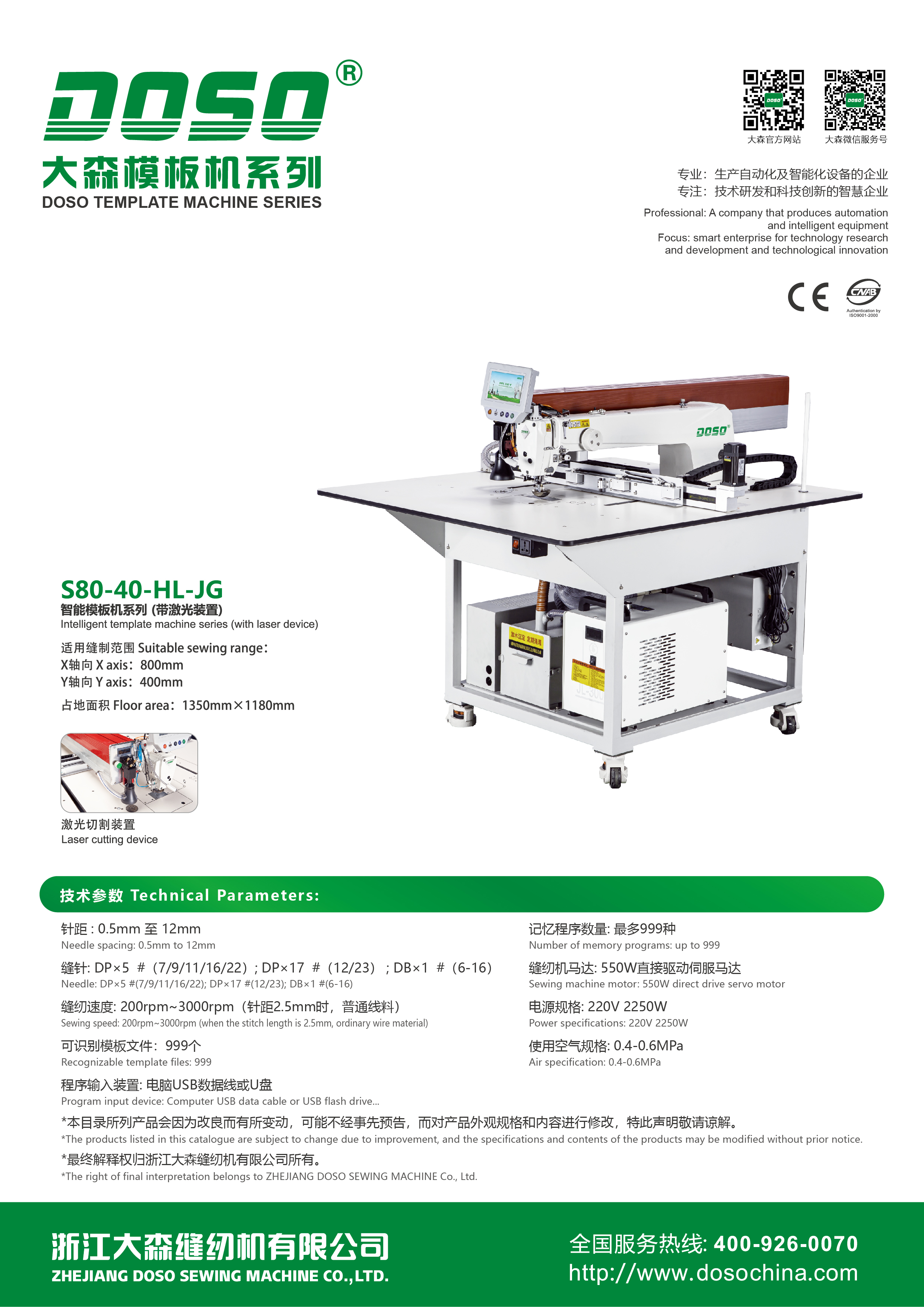 適用縫制范圍: X軸向:800mm Y軸向:400mm 占地面積:1350mm×1180mm