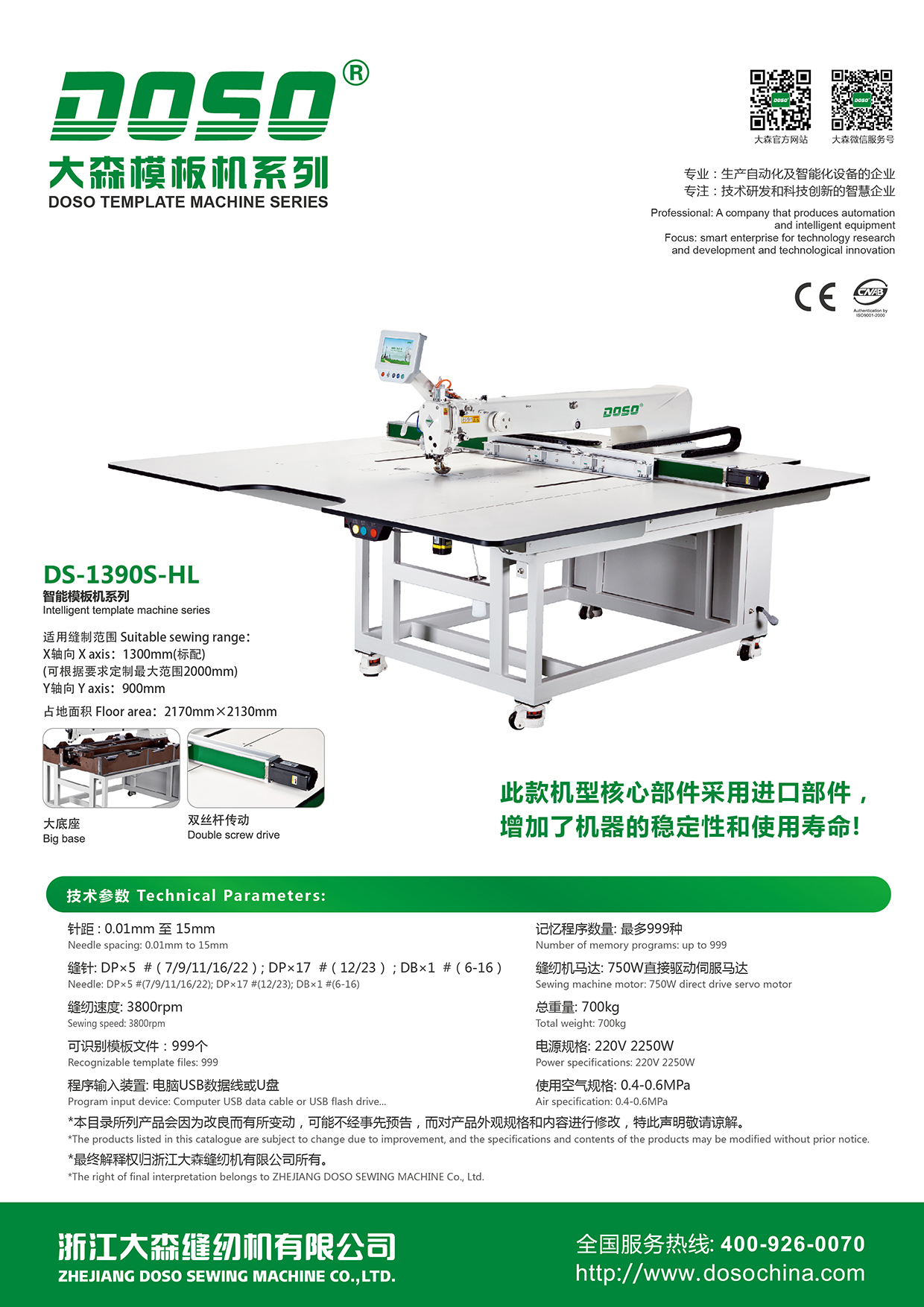 適用縫制范圍: X軸向:1300mm Y軸向:900mm 占地面積:2170mm×2130mm